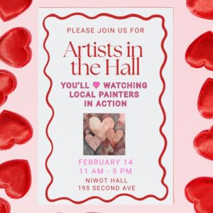 Niwot Hall Loves Artists on Valentine’s Day If you love art, you'll enjoy a visit to Niwot ... 14 Feb 11:00 am - 5:00 pm Niwot Hall195 2nd Ave